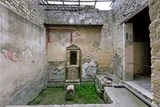 Le vestibule d'entrée s'ouvre sur un des plus grandioses atriums que nous connaissions, même à Pompéi, avec son toit à compluvium de type tuscanicum (les gouttières en tête de chien sont en partie de l'époque).