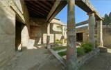 Maison à l'Atrium Corinthien (Insula V, n. 30). - C'est une petite maison, ne possédant que quelques pièces au rez-de-chaussée, mais qui a un certain cachet de distinction et même d'élégance. Son propriétaire appartenait à la classe moyenne aisée d'Herculanum. A l'extérieur, elle est précédée d'un petit portique qui se prolonge jusqu'au croisement du decumanus et d'un trottoir en dalles de marbre plus raffiné que les autres. A l'intérieur, après une entrée à trois marches, elle s'ouvre sur un gracieux atrium polystyle à six colonnes (trois de chaque côté), disposées autour du bassin de l'impluvium, au milieu duquel la cuvette basse d'une fontaine dessine une croix. Les fûts de tuf des colonnes sont recouverts de stuc rouge et blanc.