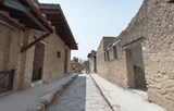 Maison Samnite (Insula V, n. 1-2). - Bordée d'un trottoir dont le pavement est particulièrement soigné, elle possède une entrée flanquée de deux podiums et constituée par un beau portail, dont les pieds-droits en opus quadratum sont surmontés de chapiteaux corinthiens en tuf. Malgré les remaniements et les destructions qu'elle a subies, cette maison, plus qu'aucune autre, met en évidence la structure et l'architecture de l'habitation de type samnite à Herculanum. La galerie en saillie, au-dessus du portail et sur toute la longueur de la façade, est due, comme c'est le cas pour la " Maison à la cloison de bois „ voisine, à un agrandissement de l'étage supérieur exécuté lorsque, au moyen d'une autre entrée au n. 2 et d'un raide escalier en bois, les pièces situées au-dessus de l'entrée furent complètement détachées du reste de l'habitation pour pouvoir les louer séparément .