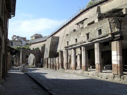 À partir de ce point, près d’un temple retrouvé et encore enseveli, qui servait de frontière au Cardines 2, il était possible de accéder dans de grands espaces couverts avec la présence de restes de céréales et marchandises portuaires, peut-être ici la présence de l' Horrea de Herculanum, étant la mer très proche, et nous situons dans les Insulas 2 et 1. C'est toujours dans cette région qui, grâce aux récentes fouilles, l'ont a découverts les vestiges d'un bâtiment thermal et, peu loin, la présence de la Villa des Papyrus qui suivait le littoral, et ou les fouilles sont toujours d'actualité.