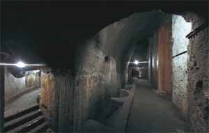 La construction de l'édifice, comme le prouvent ses structures, date de l'époque romaine, pendant et après Auguste, tandis que sa décoration appartient aux époques de Claude et de Néron. Une inscription, qui devait se répéter plusieurs fois sur les frontispices des diverses entrées, attribue cette construction à la munificence personnelle du duumvir Lucius Annius Mammianus Rufus et au talent de l'architecte Numisius.