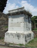 C'est une tombe à "autel" avec les rebords en travertin comme dans la tradition républicaine. Le titulaire était M. Porcius M.f., qu'il recouvrit, avec Quinctius Valgus, le premier duovirato dans le 70 avant JC et à qui sont jointes la dédicace de l'autel du Temple d'Apollon et les constructions de l'Odeion et de l'amphithéâtre, ces dernieres avec le concours de Quinctius Valgus.