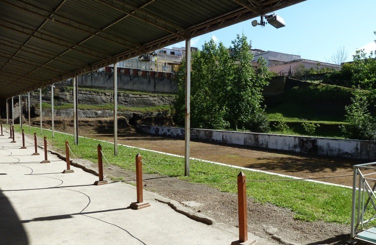 A l'extremite droite de la villa, entourée d'un couloir de peristyle elegant, la tres vaste Piscine, de 61 m sur 17 m.On y dessendait pas des escaliers dans l'angle S-E; elle etait entourée d' une belle vegetation luxurieuse qui en assurait la fraicheur. A l'ouest un grand portique, s'etant sur toute la longueur du bassin, avec des couleurs claires, des murs et du sol qui donnaient une grande belle luminosité, accentuées par les reflets du soleil dans l'eau de la piscine. Les derniers travaux en vue de l'agrandissement de la villa furent centrés sur la piscine ; son immense bassin (m. 61 x 17) se caractérise par la présence de certaines astuces ou mesures techniques, l'inclinaison vers le sud pour permettre l'écoulement des eaux par exemple, qui en font l'un des plus beaux exemples de structure destinée aux activités sportives et en général au soin du corps. La piscine était d'ailleurs immergée dans un cadre naturel luxuriant, entourée de près, d'arbres et de plantes parmi lesquelles se dressaient de splendides sculptures en marbre blanc, de très belles copies romaines d'originaux grecs, le propriétaire privilégiant la réunion dans un contexte unique de la végétation et d'oeuvres de très grande qualité artisanale. Une colonnade bordait à l'origine le coté ouest du bassin, donnant sur toute une série de pièces aux fonctions les plus diverses ; sur la paroi interne de ce portique une décoration sur fond blanc appartenant au IVe style*, avec quelques décorations particulières (paysages, éléments végétaux et animaux) très finement exécutées. Les travaux de restructuration de la villa prévoient la réfection de la couverture et le retrait des colonnes trouvées en un lieu différent de celui où elles étaient à l'origine, dans une autre partie des bâtiments où elles avaient été déposées.