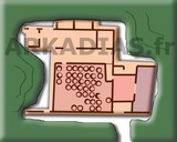 À l'extrémité sud, il y a une grande cour de ferme pour le battage des céréales, avec des dalles et des murs recouverts de cocciopesto. De forme Rectangulaire, mesurant 12,20 x 10 m et adjacente à un porche ouvert sur cette cour, ce portique présente trois piliers à section rectangulaire, un plancher également recouvert de cocciopesto et mesurant environ 9,40 x 3 m. Des graffitis avec deux étoiles à cinq branches ont été trouvés sur le mur ouest. Compte tenu de la proximité de la zone avec laquelle il forme un tout, nous avançons l'hypothèse que ce portique a assumé les fonctions de nubilarium (dépôt de céréales). À l'appui de cette hypothèse, nous mentionnons le porche du grenier de la villa de Manacorda, qui a été vu et interprété comme un espace pour réparer le grain en cas de mauvais temps.Lors des fouilles effectuées, une grande quantité de matériaux a également été trouvée et récupérée, notamment des amphores, des céramiques crues et épurées, écrasées par l'effondrement des structures, ainsi que des outils agricoles.